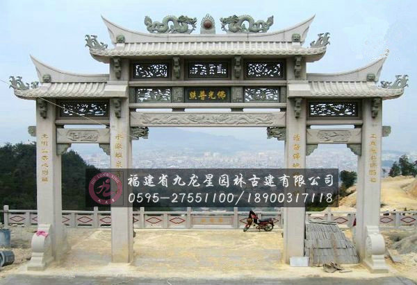 牌樓最早是由木門的演變而來的,是中國(guó)傳統(tǒng)建筑藝術(shù)的結(jié)晶,是裝飾效果極強(qiáng)的標(biāo)志性建筑。現(xiàn)在石雕牌坊與石雕牌樓的名稱現(xiàn)在都在混用,但是在最初石雕牌坊和石雕牌樓在設(shè)計(jì)結(jié)構(gòu)上是有很大的不同的。首先,石雕牌樓上面有一個(gè)斗拱和屋頂,它有更大的烘托氣氛。而石雕牌坊在設(shè)計(jì)結(jié)構(gòu)上就比較簡(jiǎn)單了,但是由于它們都是我國(guó)古代用于表彰、紀(jì)念、裝飾、標(biāo)識(shí)和導(dǎo)向的一種建筑物,而且又多建于宮苑、寺觀、陵墓、祠堂、衙署和街道路口等地 方,再加上長(zhǎng)期以來老百姓對(duì)“坊”、“樓”的概念不清,所以到最后兩者成為一個(gè)互通的稱謂了。
