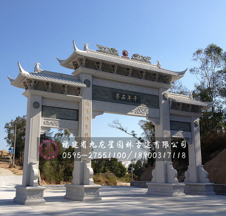 牌坊作為中國傳統的建筑模式,傳承至今其擁有更多自己的風格與特色,成為外國學者們研究中國建筑文化的主要途徑和方式。傳統石牌坊設計形式多樣,現代石雕牌坊體現給人的感覺秀氣細膩,就如同南方人所體現出來的那種細膩靈動。在現在牌坊制作市場上,最為常用的牌坊有沖天式和門樓式兩種。其中沖天式牌坊的間柱高于明樓樓頂,讓其看起來更加高大,門樓式牌坊配有一間二柱,以及其他形狀,最高處是明樓正脊,增加了它傳統美和歷史厚重感,這需要采購者根據自身的情況來選擇購買與擺放。