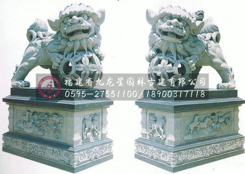 獻錢獅是因石獅造型前一般常飾一串古錢而得名,它是南方石獅當(dāng)中的一種造型。獻錢獅寓有招財進寶之意,造型可愛乖巧,富有靈性。它是漢族民間最為常見的一種石獅造型之一,常擺放于寺廟或是祠堂門前。獻錢獅一般也為雌雄一對,雄獅常飾于大串的銅錢,寓意招財進寶。而雌獅則戲玩著小獅 子,寓意人丁興旺之意。